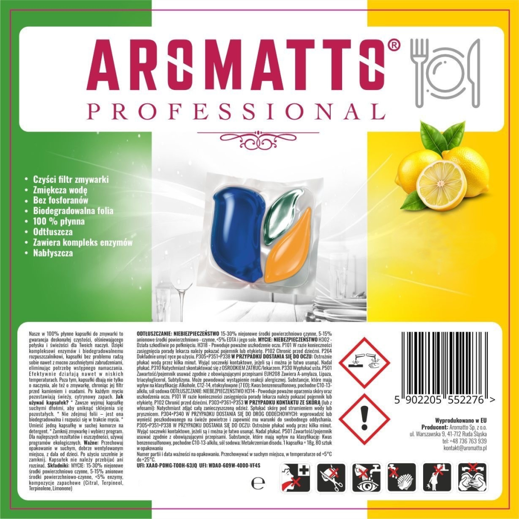 Aromatto Professional - Kapsułki do zmywarki cytrynowe all in one na sztuki 18g
