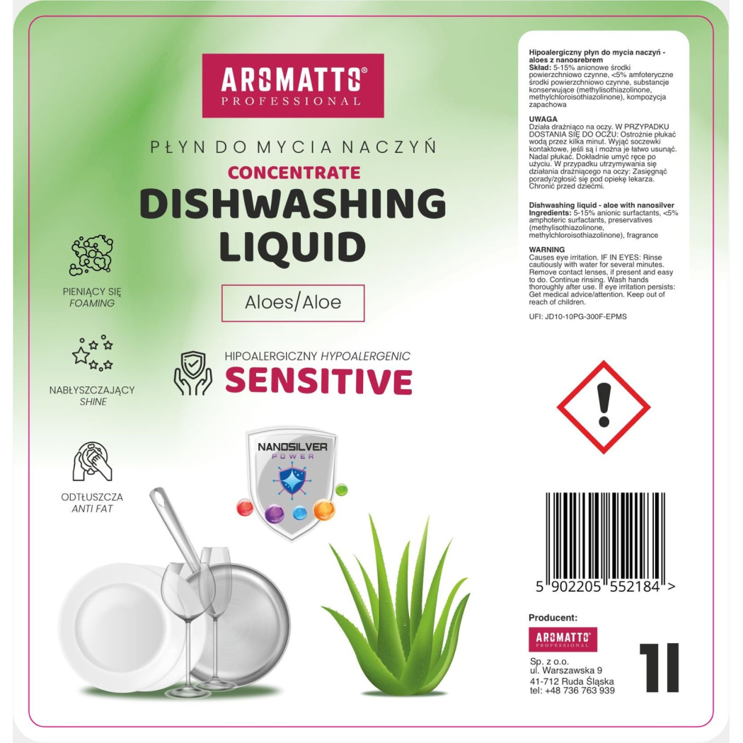 Płyn do mycia naczyń z Nanosrebrem Aromatto Aloesowy 1L koncentrat